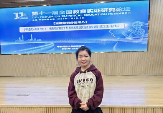 11月8日,第十一届全国教育实证研究论坛主题分论坛“开放·自主:数智时代思想政治教育实证论坛”在华东师范大学举行,我院青年教师任苗苗应邀参加本次论坛。此次论坛聚焦“自主”与“开放”两大主题,设置主论坛与两个平行分论坛,吸引了来自全国230余所高校、基础教育学校及企事业单位的350余名专家学者、教育部门分管领导、高校管理者、专职辅导员、在读研究生等,覆盖马克思主义、思想政治教育、教育学、人工智能、信息技术学等多学科。
