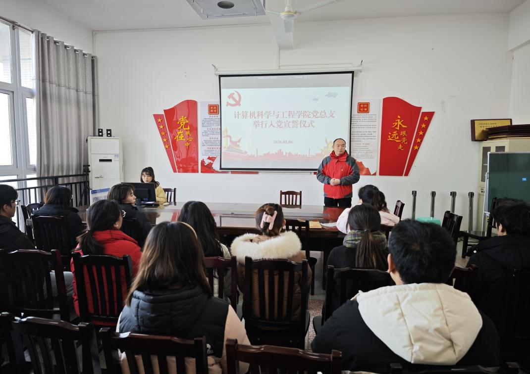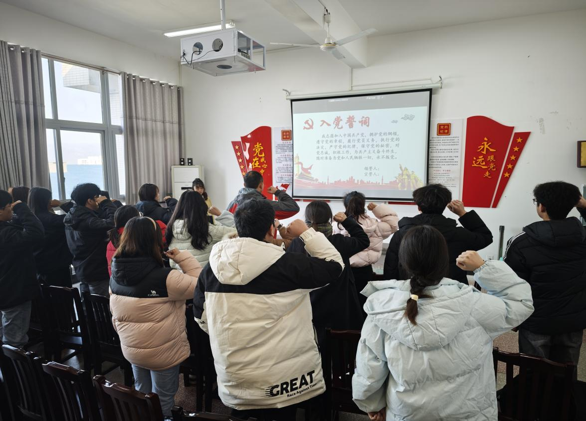 1月6日下午,计算机科学与工程学院党总支在慎思楼3栋405会议室举行入党宣誓仪式。学院党总支书记赵春哲、组织委员陈璐瑶、各学生党支部书记、预备党员及正式党员代表参加。