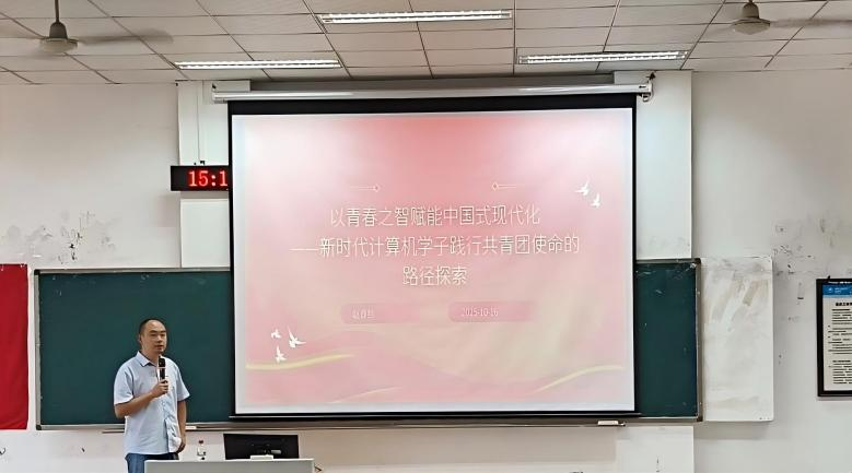 10月16日下午,计科学院党总支书记赵春哲在明辨楼2-202教室,为“青马工程”培训学员作题为《新时代计算机学子践行共青团使命的路径探索》的专题讲座,这也是本学期团总支青马培训课程之一。